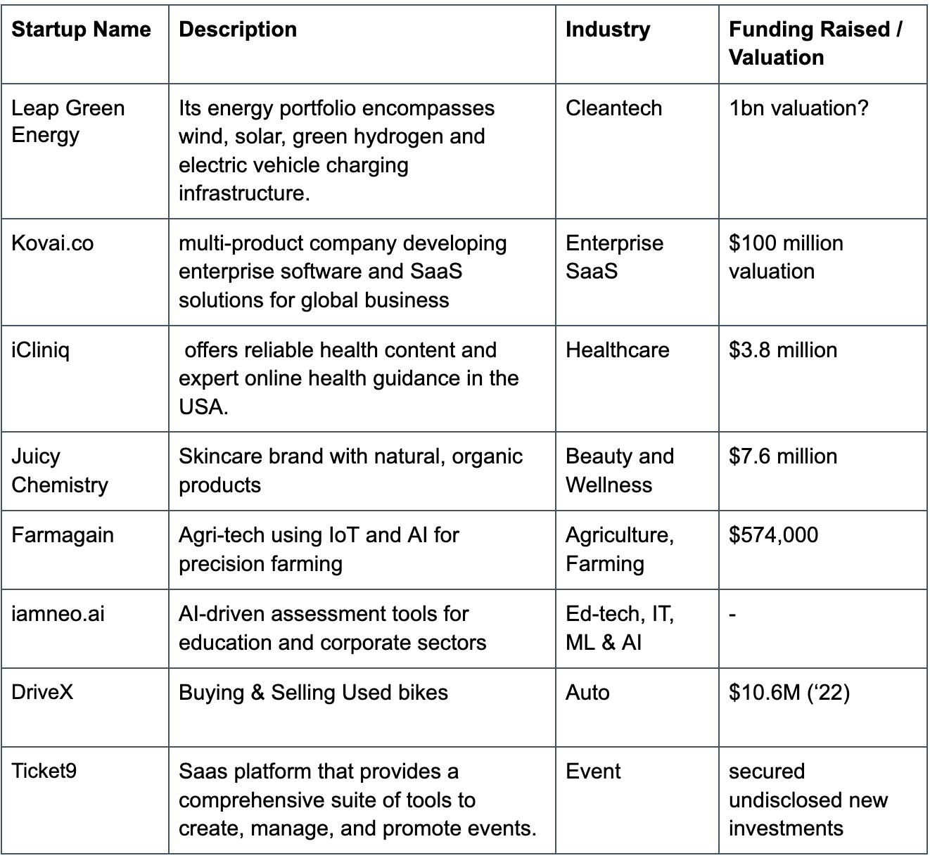 Notable Startups: